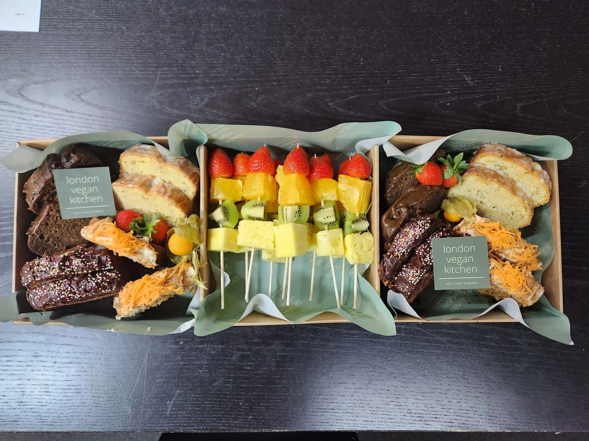 menu afternoon tea platter boxes £145.00 brunch platter box £49.00 sandwiches, wraps and rolls box from £65.00 sweet treats box £58.50 healthy salad box £68.50 seasonal salad box £68.50 finger buffet box £82.50 trending salad box £68.50 favourites salad box £68.50 jackfruit larb box £48.00 our collections from £209.50 drinks and disposables from £2.25